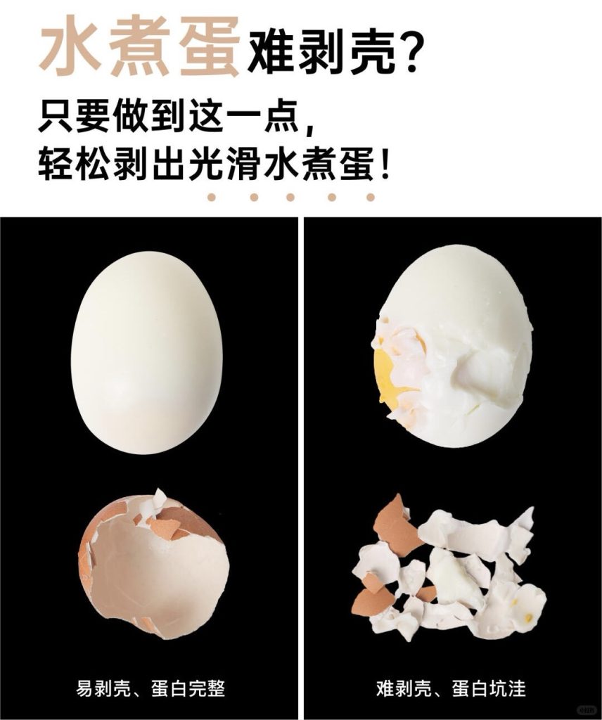 你有没有遇到过这种崩溃时刻:精心煮好的水煮蛋,壳一敲开,蛋白却「连壳带肉」地被撕走,耐着性子剥完,蛋已经变得坑坑洼洼?互联网流传了许多「剥蛋小窍门」,有人说要把蛋泡冰水,有人坚持热水下锅,也有人说要冷水下锅……到底哪个才是关键?有没有一个办法,能让水煮蛋每次都轻松顺利脱壳?